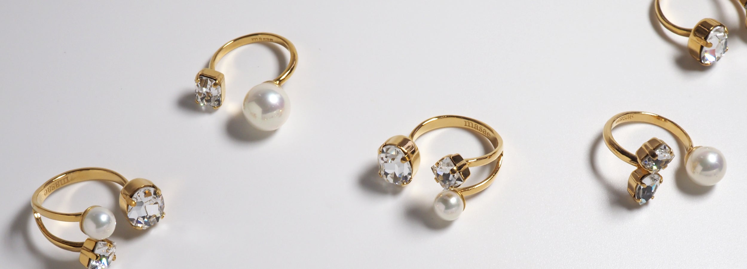 パールとクリスタルのガラス石がボリューム感のあるリング。デイリールックをドラマチックに演出するビジューパールリングです。ほかのリングと重ね付けを楽しんでいただけます。
