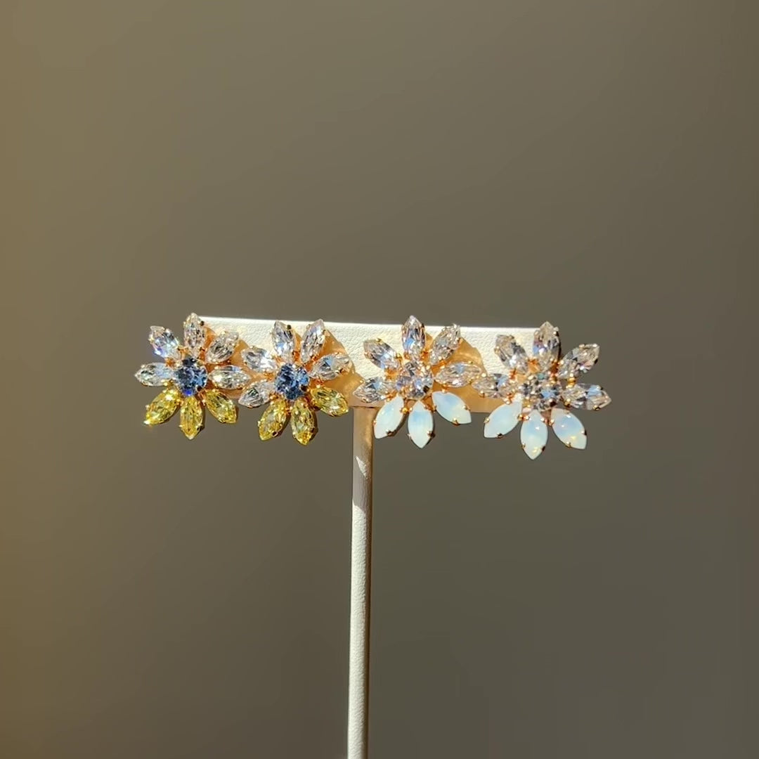 耳元で咲く、大人かわいいビジュー花ピアス